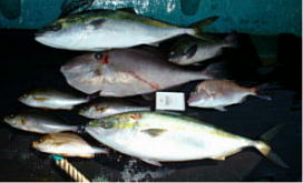 | 2人分の釣果 | 松本氏ハマチを釣る。 | うーん ハマチ |