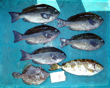 | 釣 果 グレ27〜34cm5、カワハギ、アイゴ 他にアオブダイ、一の字30cmクラス1(リリース) |