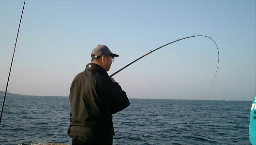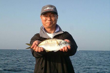 | 経過(言い訳) HPで知り合った「趣味の釣り ZUBORA」のMIMOさんと田辺に釣りに行ってひどい目に遭ってきた。絶不調いつまで 続くのやら・・・ 風も弱く晴天ベタナギじゃけど、今回も潮色が良くないドブ潮やわ、苦戦するな思ってたらしばらくしてまずこまいけど グレ、続いてMIMOさんもグレ、ウキ釣りの同船の知らない人もグレ40cmオーバー、何でウキに大きいの釣れるねん 逆やんか。MIMOさんが何か掛けた竿を叩いているサンノジか?上がってきたら小さいけどシマアジだった。その後退 屈しているとアタリがある。 もう一つ喰わないけど少しづつ拾らって行くと1人10枚くらいにはなると思っていたら、その内全員、全然喰わなくなっ た。四国の海こんなんかなー思いながらタイムアップ。ウキの人ウキ下5ヒロ、結局この人40オーバー2枚他小型2枚 今回まるで、釣果が反対やんか、流し込みで大きいのが釣れないとあかんのに・・・後で考えるとどうもグレの動きが 悪かったのかもしれない。こういうときは太めの糸がええんじゃが、太いと喰い悪かったのかな、どぶ潮気味の時は、 底からあまり離れない事が多いけど、いつも悩む所やな。 |