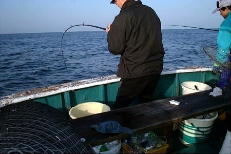 | 使用道具 田辺 大瀬丸 しゃくし瀬 流し込み釣り リール:CVZ253、竿:がま波さぐり2号3.9m、 糸:G-MAX2号、針フカセグレ5号 |