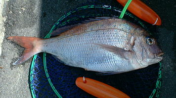 | 使用道具 流し込み釣り リール:CVZF300、竿:波濤3号5.m、糸:G-MAX5号、針マダイ8号 |