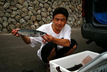のりたまん氏と 夜釣りのエサトリのサバ |