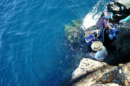 | 謎のおいちゃんもお疲れ | 二並本島で釣る謎のおいちゃん | これもおいちゃんやなエサトリ がいっぱい |