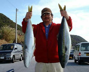 | 3人で釣果・・・ | 中山氏ハマチ2本 |