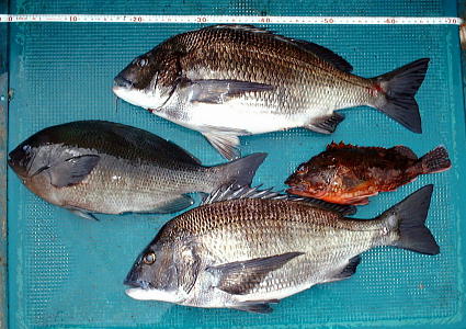 | 釣 果 グレ40cm1枚、チヌ51、52cm2枚、ガシラ1 |