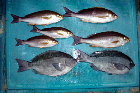 | 釣 果 グレ33〜35cm2枚、他イサギ5 |