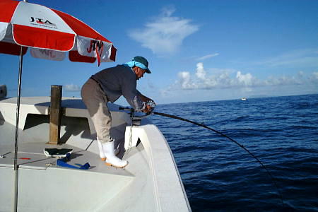 魚を起こす元気もない・・・いくらしんどくても釣るのじゃー ちょい小振りキハダならヒョイ、3本目じゃな