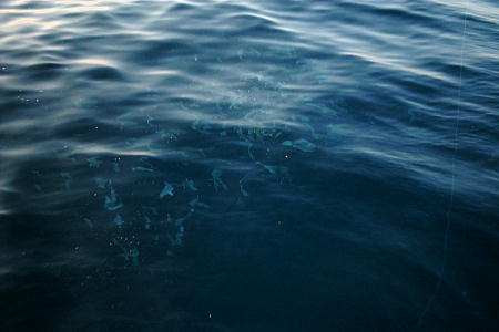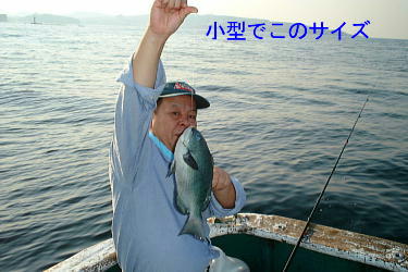 深くしたり、マキエのタイミングをずらしたり、遠目に追いやってみてもポツポツとしか喰ってこない。どうやら糸が見えてるみたいで、サシエの前 で反転しよるみたい、う〜ん見えとるんか?ちっこい脳みそやのに賢いやっちゃ・・・大きめ程喰わないみたい。 う〜ん仕方ないなー、2号の道具を仕舞って、がま波さぐり1号、X103H、糸1.5号を出してくる。流すとすぐにスプールがヒューン、ハンドルを 回してストッパー入れるとキュンキュン、船頭氏「タマ要りますか?」「いーやえーよ、ようひくけど重量感無いしー」上がってきたのは30cmちょ いのグレ、しばし連ちゃんでグレの引きを楽しむ。ちっこくても水温が高いせいかそれなりに面白い。 木っ端グレに混じって40cmくらいのグレも見えだした。あれ釣りたいなー、ちょっとマキエから外れて出てきてるみたいじゃな・・・この辺にこま いの寄せといてっと・・・側面から少な目のマキエして糸12回ほど送り出して「おっきいの喰えよ・・・」 まもなくスプールがヒューン逆転、おっ ちょっぴし重量感が・・・ビュビュッ ドラッグを引き出していく、止まれーよっしゃよっしゃじわじわ浮いて着始めた。と再度ビュビュッ ドラッグを 引き出していく、うーんやばい・・・もうちょっとドラッグきつめにするかなー・・・??・・「ありゃばれてしもうた。」糸が根ズレで1ヒロ程ザラザラで 上がってきた。う〜ん不覚・・・重量感あったのになー。再度流し始めると20m程でアタリ、今度はイサギだった。イサギをいくつか釣って、ま たアタリ、こんどのもちょっぴし重量感のある魚、何とか顔を見ないと・・・ビュービュッ ドラッグを引き出していく、ヌヌヌ ヌオーってひっぱり上 げたのが今回最大魚。その後も結構型揃いのイサギが喰ってきたけど、時間切れ終了。 グレは30cm以上くらいを絞めてキープ、生け簀に残ったグレは数量カウント後リリース「又大きくなって釣れてね」「2度と喰うか」と言わなか ったけど、今日は遊べた。 その後、大瀬丸船頭さんちでホームページ出したいと言うことでお手伝い。近い内にアップ予定です。 |