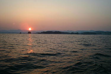 | 経過(言い訳) 台風とか悪天候続きでしばらく釣りに行ってないけど天候が回復してもNOAA画像を見ると、しっかり大雨が降った痕跡が残っている。水潮が 取れたかなーっちゅう兆候が見え始めたのでさあ行こうと思ってる所に台風17号が発生、まいったなー・・・進路を見ると動きも速いし磯は無理 かもしれないが船なら出られるじゃろっちゅうことで、またまた大瀬丸に釣行。 今日もみんな台風を警戒したのか客がおいら1人だけの貸し切り状態、シャクシの瀬に到着、ウネリも殆どなくてベタナギに近い、磯の方を見 るとなんの差し支えもないくらいだが磯上がりしてないみたいだった。 潮色は若干濁ってまだきれいな透明な水では無い。とゆるい出し下り気味の潮で深場側に船を着けて釣り始める。 がま波さぐり2号、CVZ353に糸2号でとりあえず、いつもの流し込みを始める。エサトリもいないみたいでどんどん流すと30mくらい流したところ でスプールがヒューンと逆転、定説みたいな感じでイサギ30cmちょいかな?仕掛け入れてすぐにスプールがヒューン逆転26、7cmのグレだ った。いつもそのままリリースするけど後で逃がせばええわと生け簀に放り込んで、仕掛けを入れるとすぐにアタリ竿を小気味良くキュンキュン 絞り込んで上がってきたのは30cmちょいのグレ、今日のサイズはこんなもんじゃろちゅう事で船頭さんに写真を撮ってもらう。